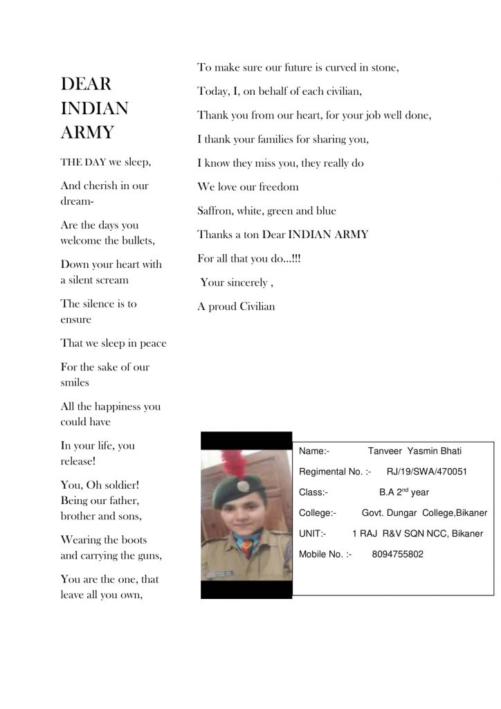 Cadet Tanveer Yasmin Bhati from government dungar collage Bikaner