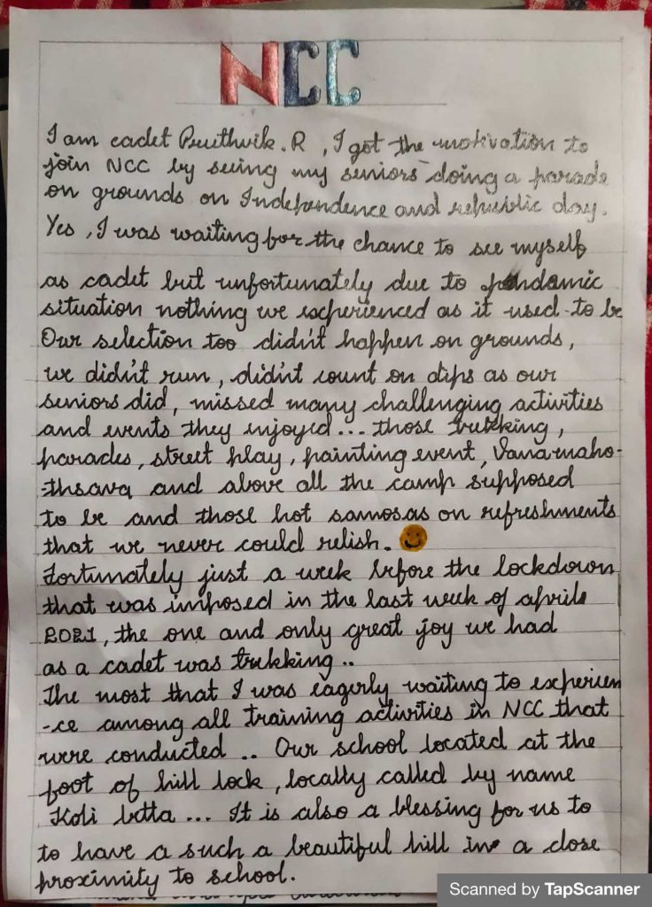 NCC ACTIVITIES AND QUIZ CERTIFICATES, ARTICLES ON THE EXPERIENCE ON NCC