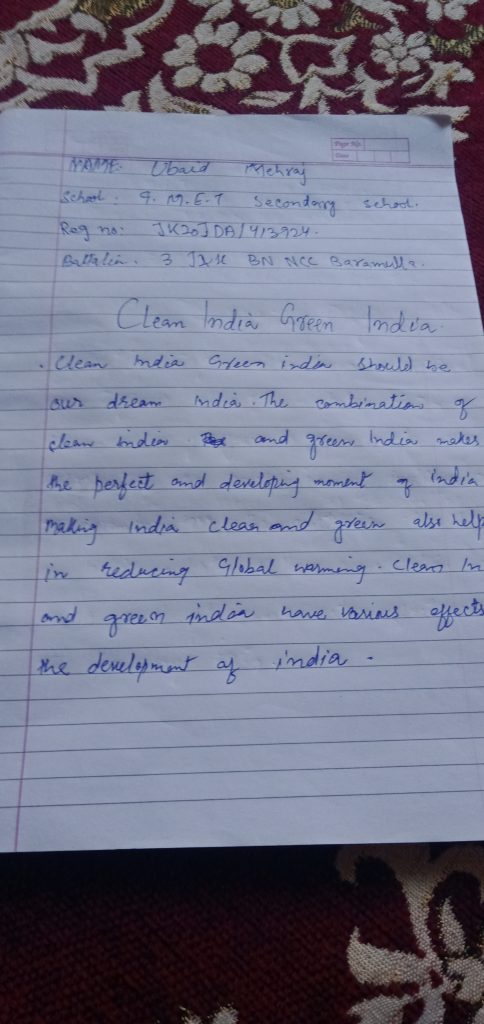 Ubaid mehraj G.M.E.T SECONDARY SCHOOL JK20JDA/413924 3 J&K BN NCC BARAMULLA