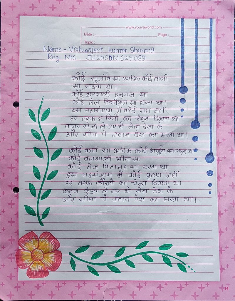 Indian??Army VISHWAJEET KUMAR SHARMA REG NO:- JH20SDN625089 1 JHAR NAVAL UNIT JHARKHAND