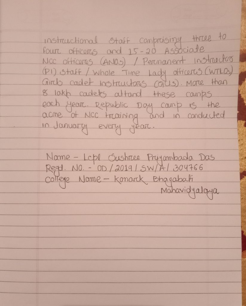 Name - Lcpl Sushree Priyambada Das Reg No. - OD/2019/SW/A/304766 Group - Berhampur Unit -6(O) BN NCC, Puri