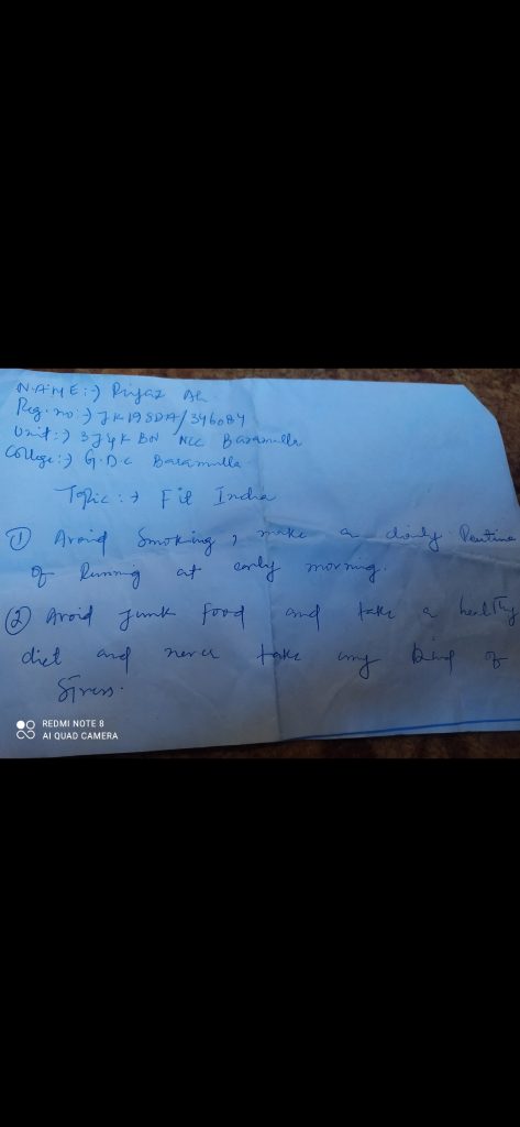 Riyaz Ah Jk19SDA/346084 3j&k BN NCC BARAMULLA GDC URI
