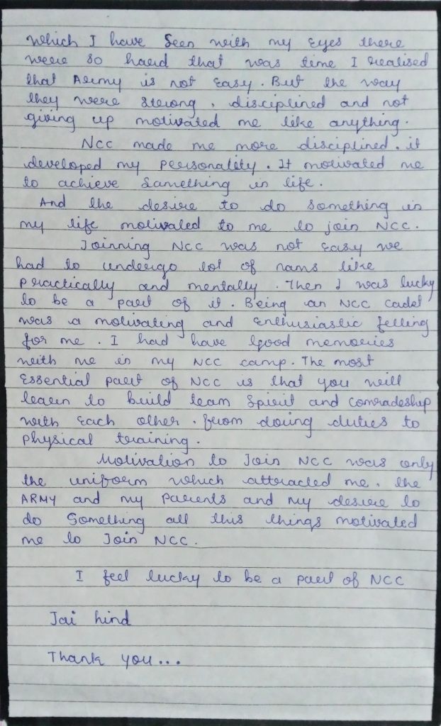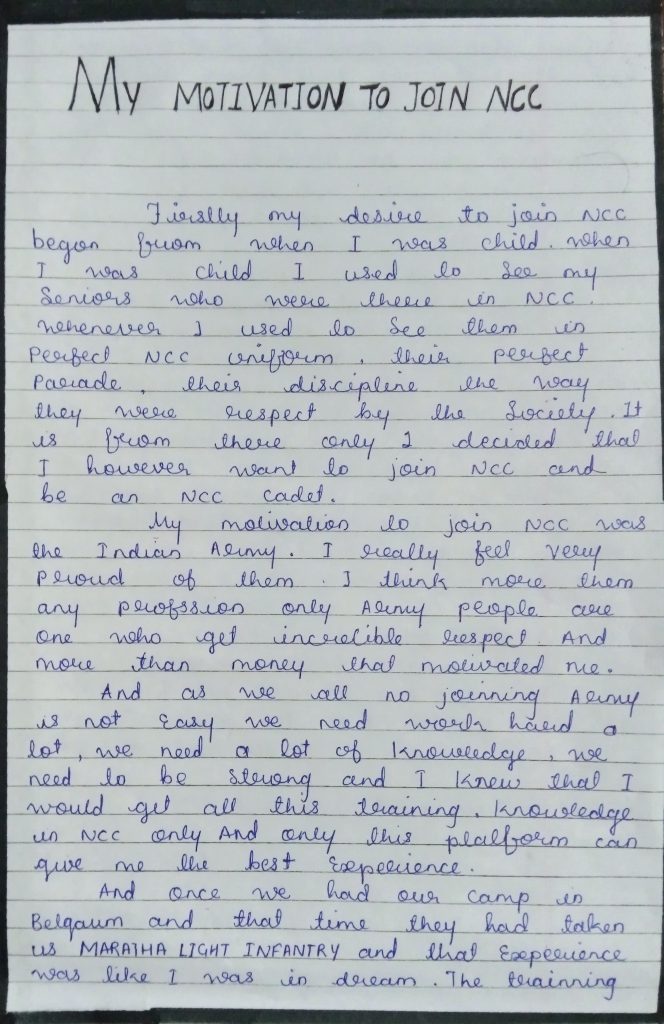 My motivation to join ncc 26Kar BN Belgaum Bk college Belgaum.