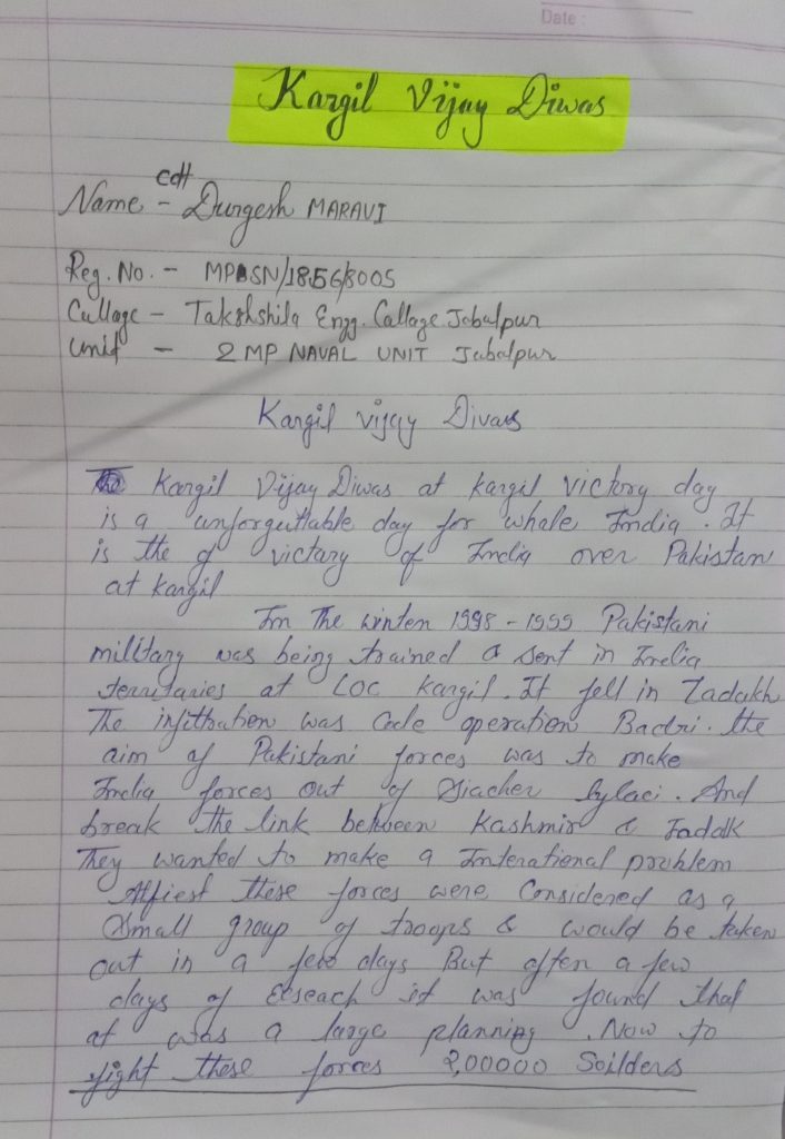 I am Anshika Mishra a cadet of 1 Mah girls bn. I am uploading posters on Kargil diwas made by 1st year cadets.