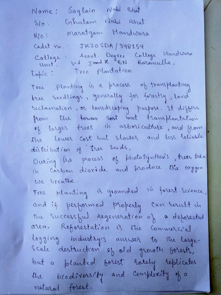 Saqlain Nabi Bhat JK20SDA/348154 3RD J K BN NCC BARAMULLA GOVERNMENT DEGREE COLLEGE HANDWARA