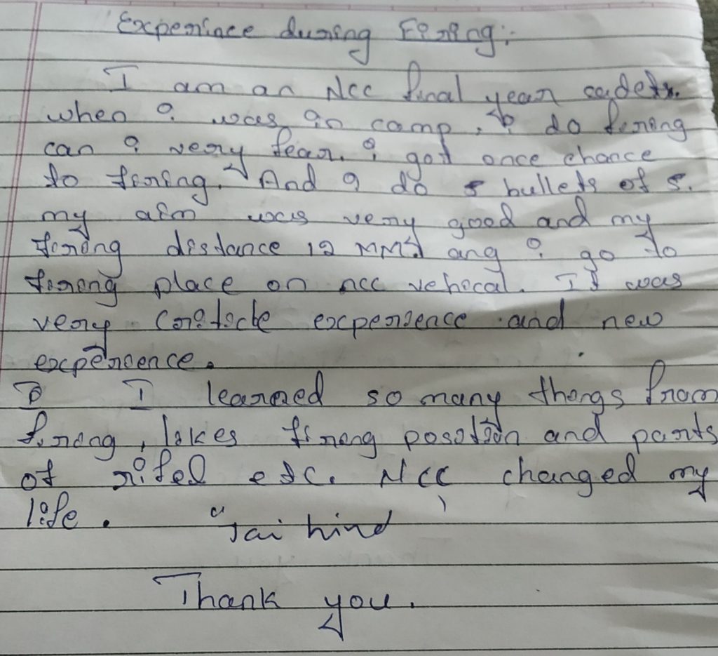 Name:Gajanan bhaskar harikant ,rank -cadet , Regt no: KA19SDA552502,unit -ncc 29karnataka. Collage -SVP kumta gphq-belgavi,Dtr -karnataka and goa.
