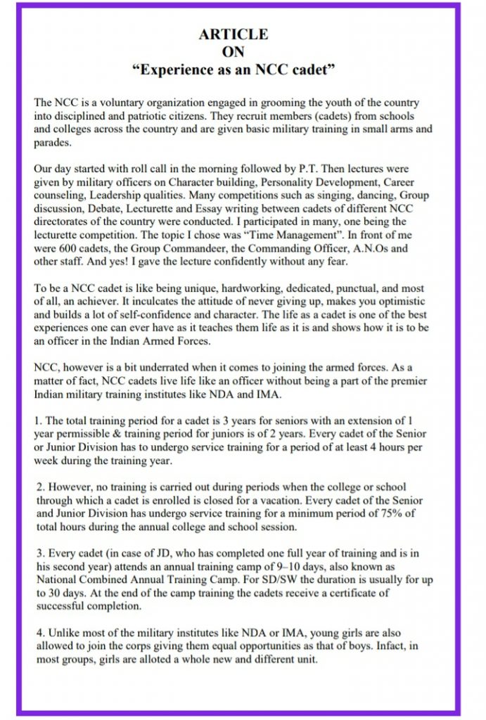 Article on My Motivation to Join NCC