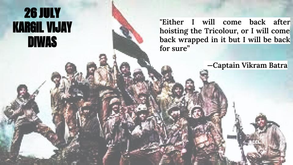 Jai Hind. I'm Cadet Bhumika Sahu. The nation remembers our brave soldiers who fought in the Kargil War on Kargil Vijay Diwas every year on July 26.