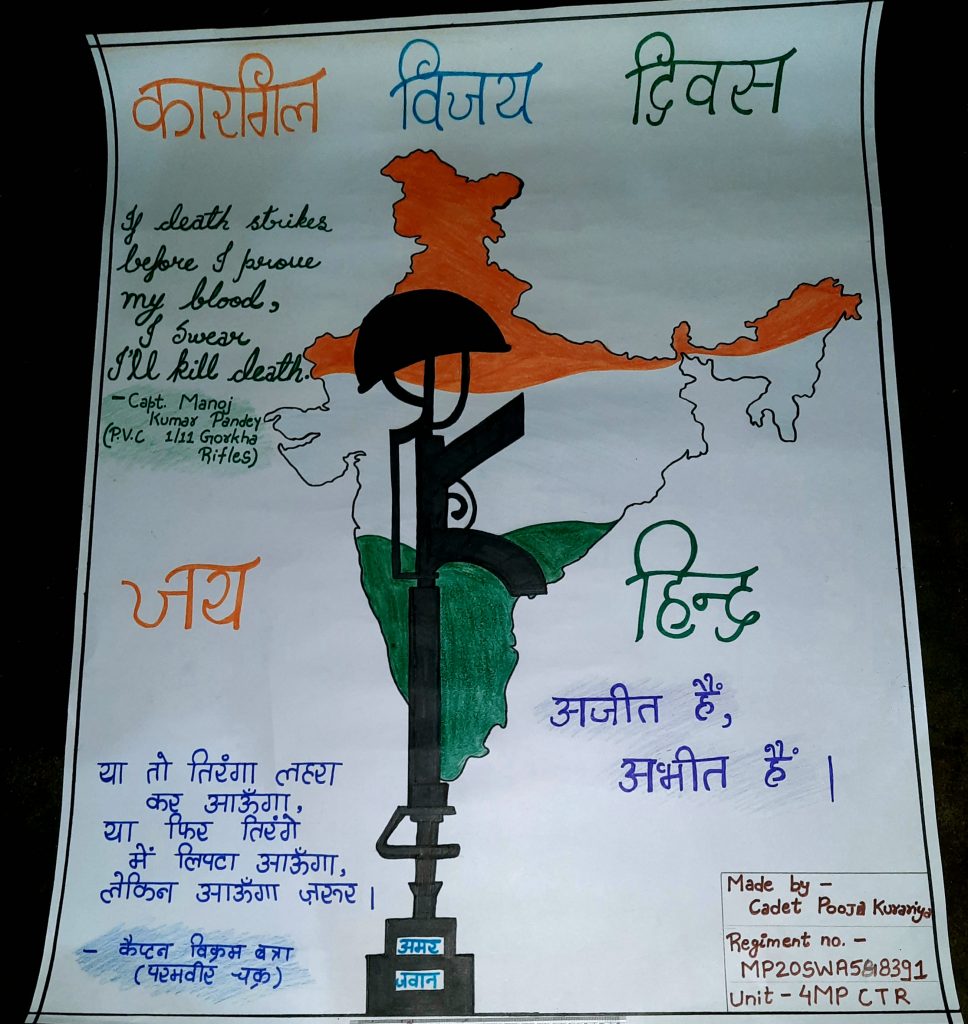 Jai hind I am Cadet Pooja Kurariya from 4 MP CTR, Jabalpur. Here is my poster based on Kargil Vijay Diwas