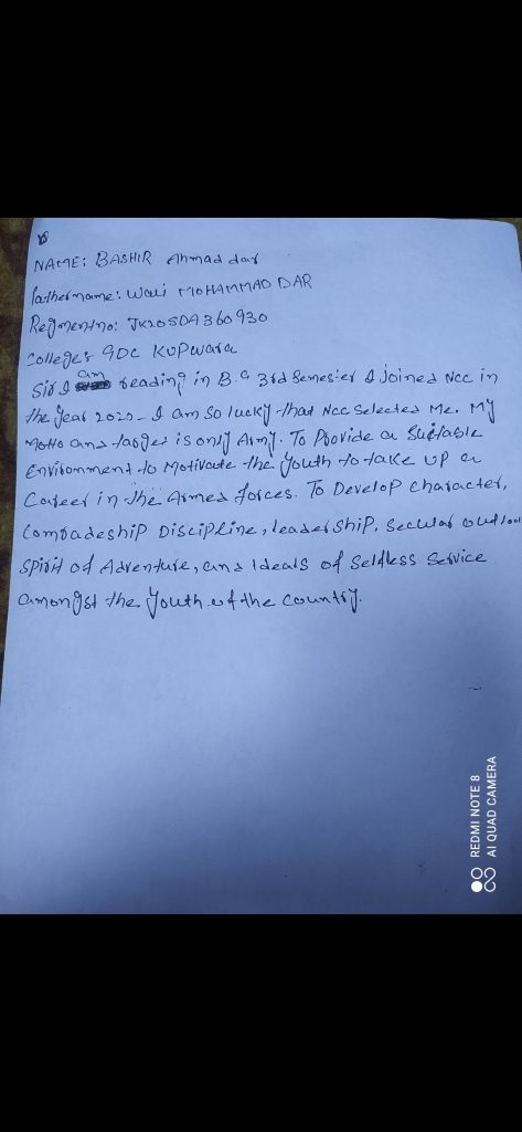 Bashir Ah Far Cadet 3j&k BN NCC Baramulla Jk20SDA/360930 GDC KUPWARA