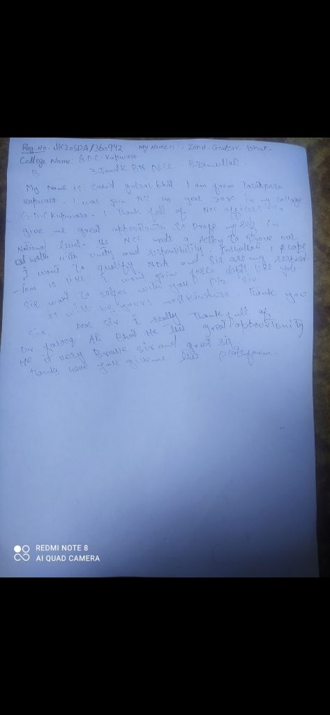 Zahid Gulzar Bhat Cadet 3j&k BN NCC Baramulla Jk20SDA/360942 GDC KUPWARA