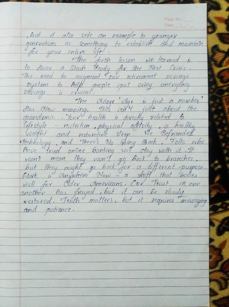 I did various activities in this pandemic and learnt many things from nature. These activities included painting, running,walking, jogging, drawing, tree plantation , and many more.