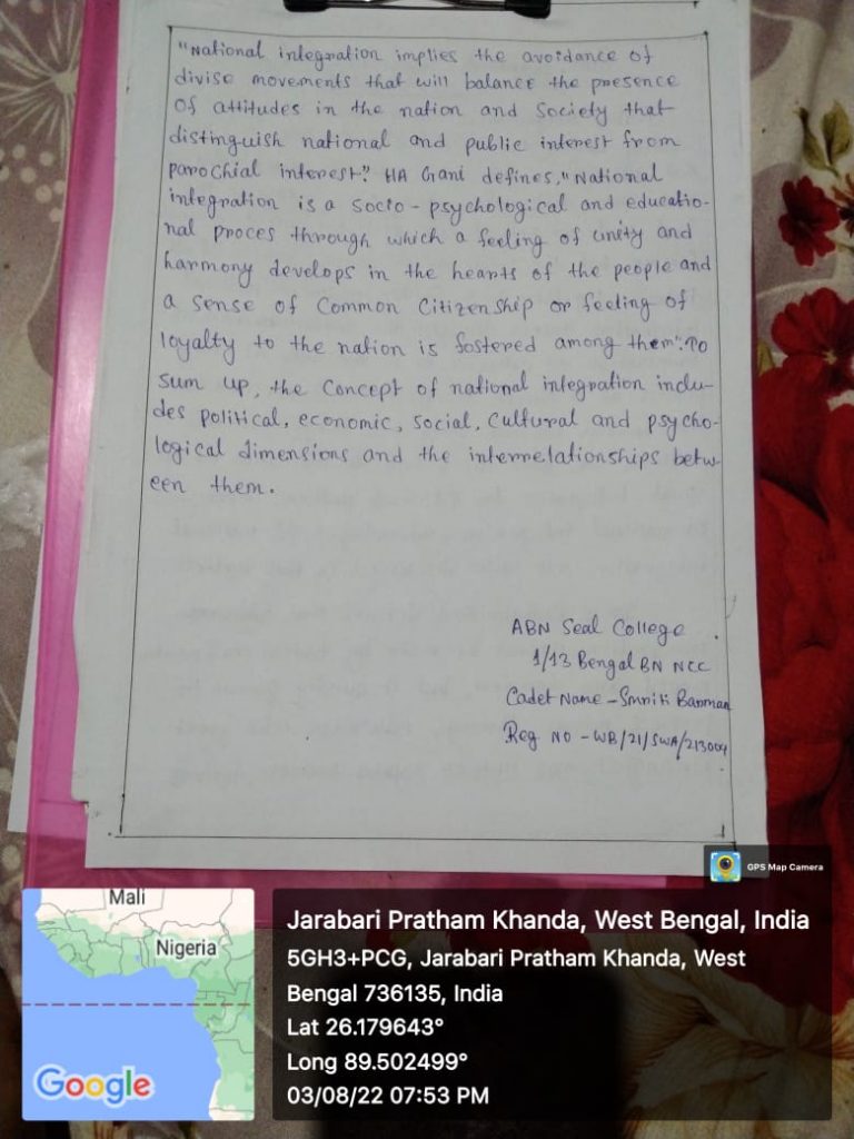 Cadet Rupa Barman Regiment no wb /21/SWA213001
