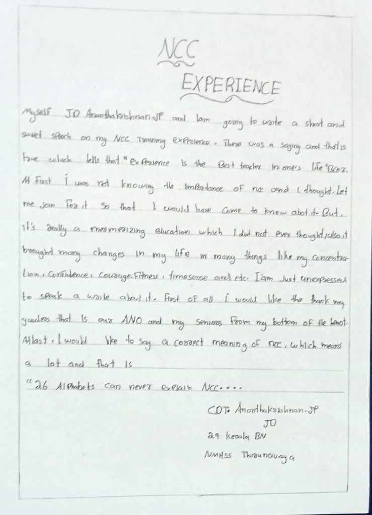 CDT SREELAKSHMI V KL/20/SWA/185238 RSM SNDP COLLEGE KOYILANDI 30(K) BN NCC CALICUT GROUP KERALA & LAKSHADWEEP DTE