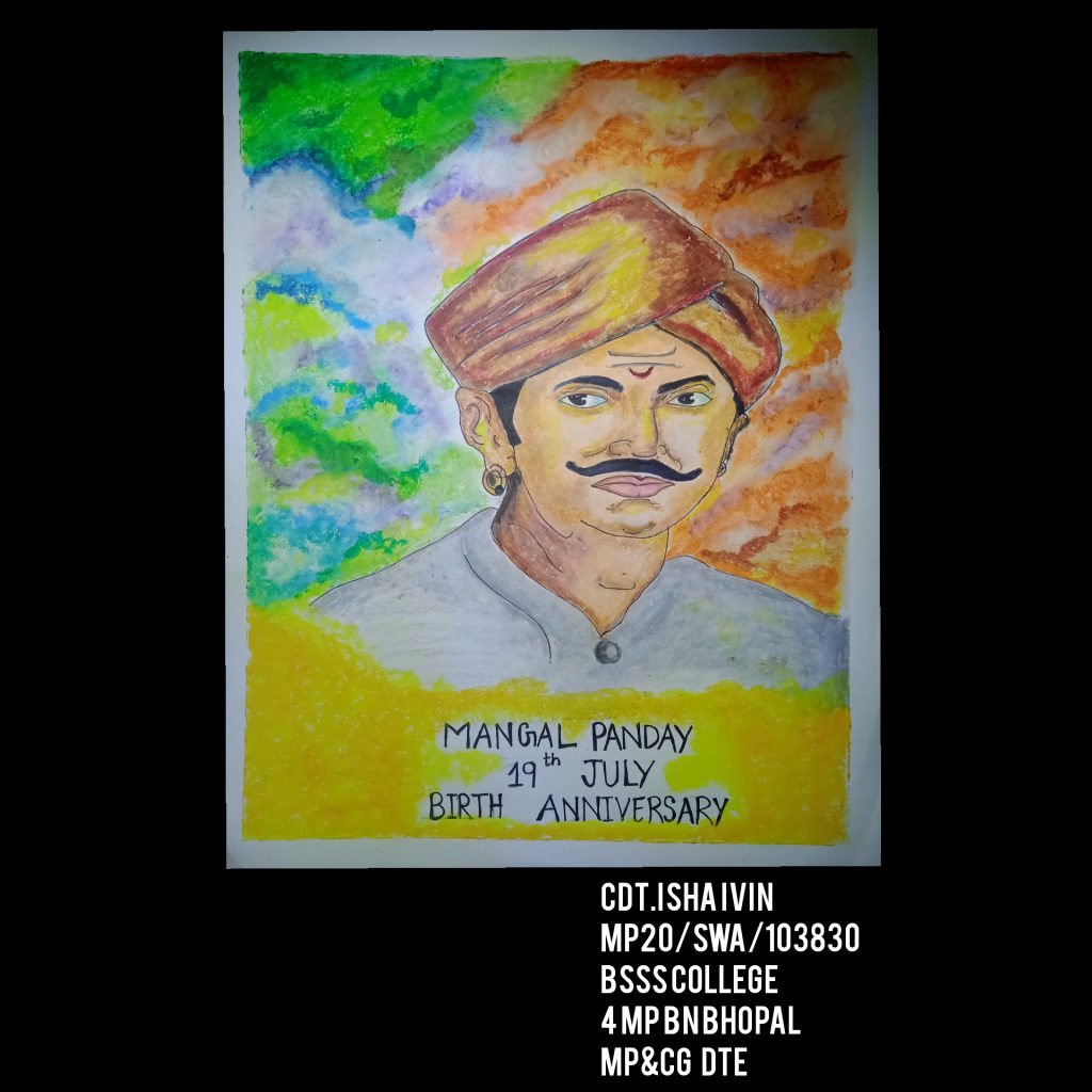 I Cdt.Isha Ivin MP20/SWA/103830 from BSSS college 4 MP BN , MP&CG DTE. I have maded poster on birth anniversary of freedom fighter mangal pandy which is celebrated on 19 july.