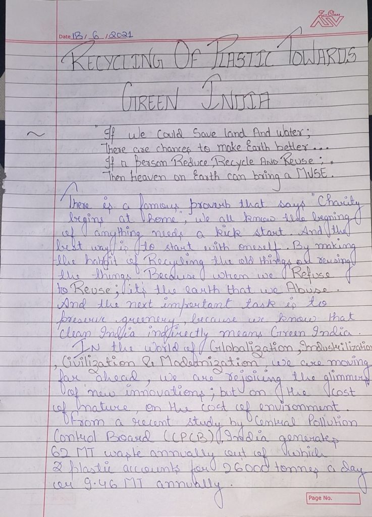 Essay: RECYCLING OF PLATIC TOWARDS GREEN INDIA