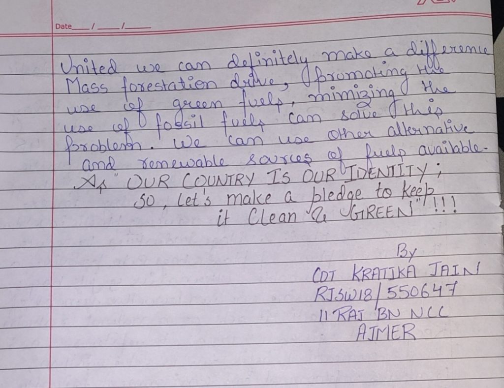 I'm CDT KRATIKA JAIN from 11 RAJ BN NCC AJMER .