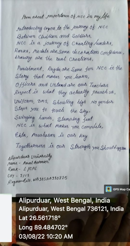 I am Amal Barman from Alipurduar University 2/13 Bengal BN NCC