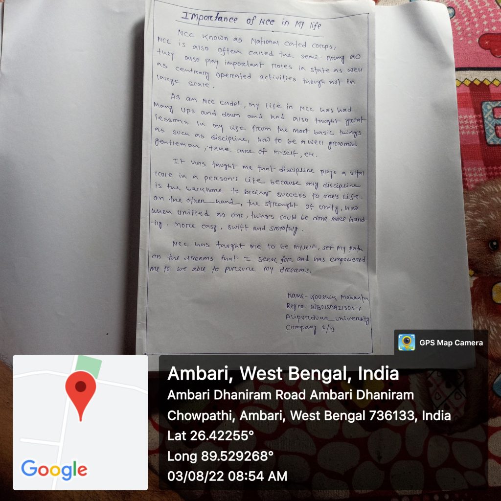 I AM LCPL KOUSHIK MAHANTA FROM ALIPURDUAR UNIVERSITY COY 2/13 BANGAL BN NCC.THIS IS MY SHORT POEM OF NCC IN MY LIFE