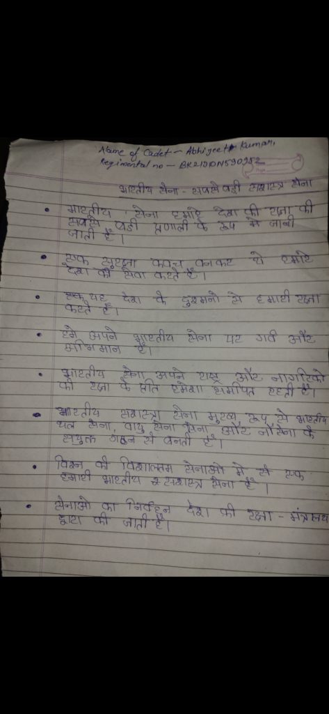 I Cdt Rishu Kumar from Troop No. N/28 Reg. No. - BR/21/JDN/592686