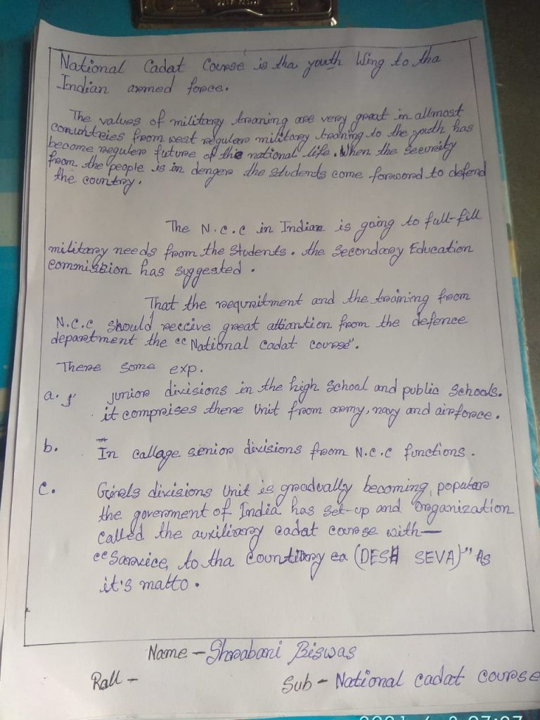 Hi, i am cadet Shrabani biswas from Ncc 14 Battalion...