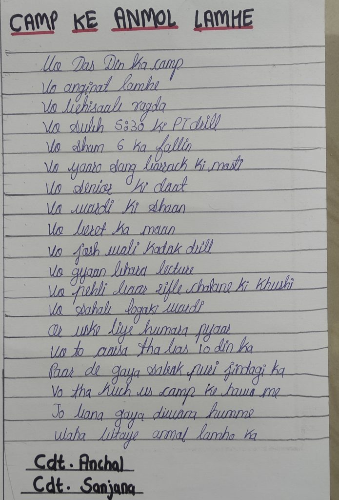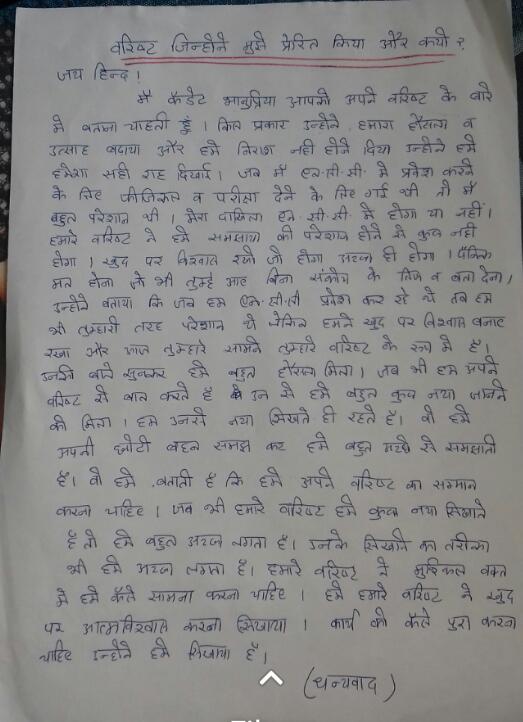 Jai hind! I am Cadet Bhanu Priya of the 3 HAR (G)Bn NCC HISAR of Rohtak Group of the PHHP&C DTE. There is nothing like senior, juniors , younger and eldear. We all are just humans.