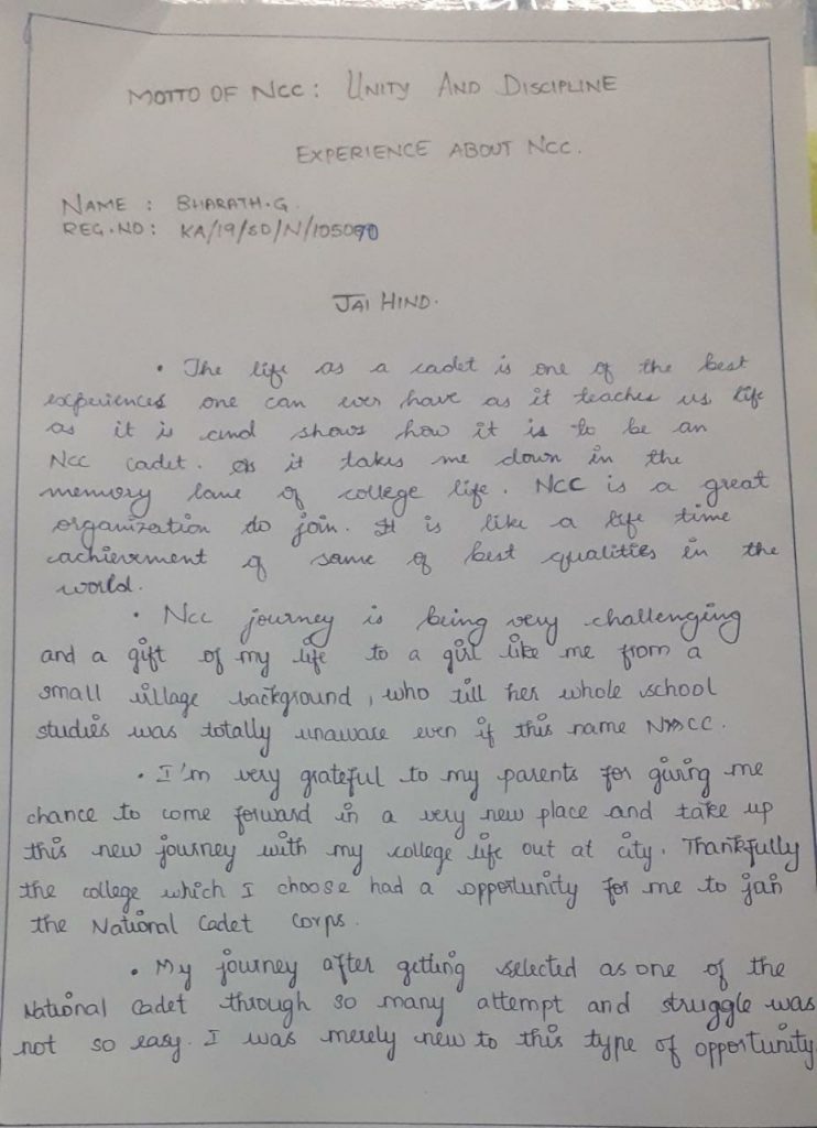 Name Aher vishal Dhondiram Reg-MAH/19/SD/A705282 7 MAH BN . NCC NASHIK ARTICLE TITLE - YUVA SHAKTI KA SHAURYA