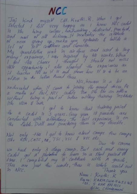cdt. Kruthi.R KAR19SWA745343 5KARBNNCC GCW,Cintamani