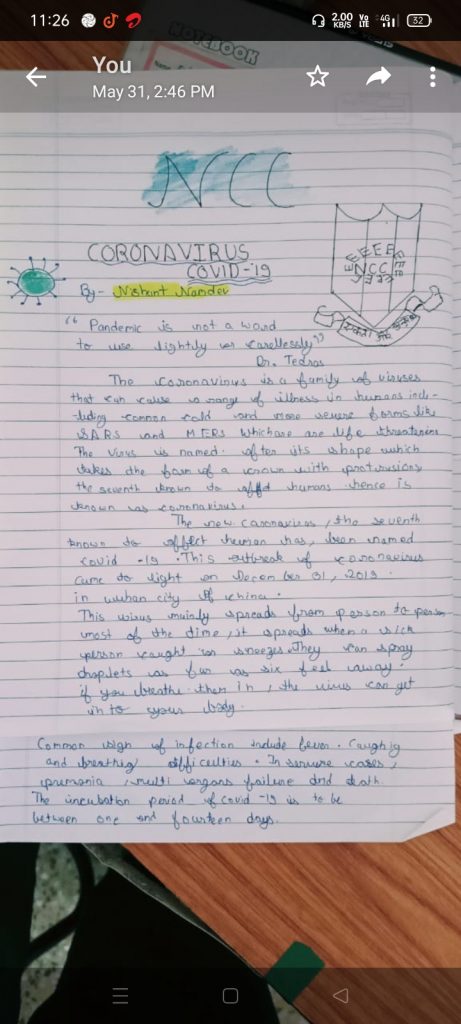 Cadet Rutuja Rajaram Kumbhar is an SW cadet of 6MAH Girls BN Ncc Kollhapur Being a social worker she has a keen interest drawing.