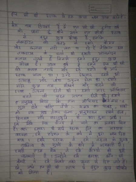 मैनें अपने आर्टिकल में एन सी सी का अनुभव साँझा किया है।