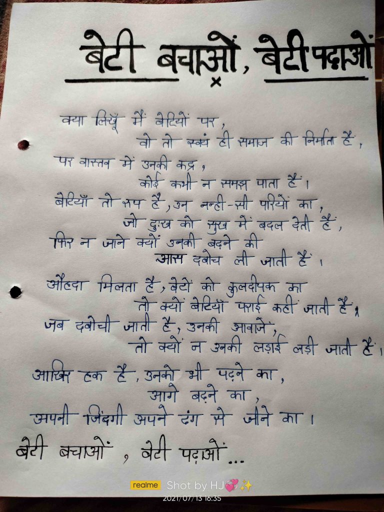 Through this poem, i want to give this message to the society, educate the daughter