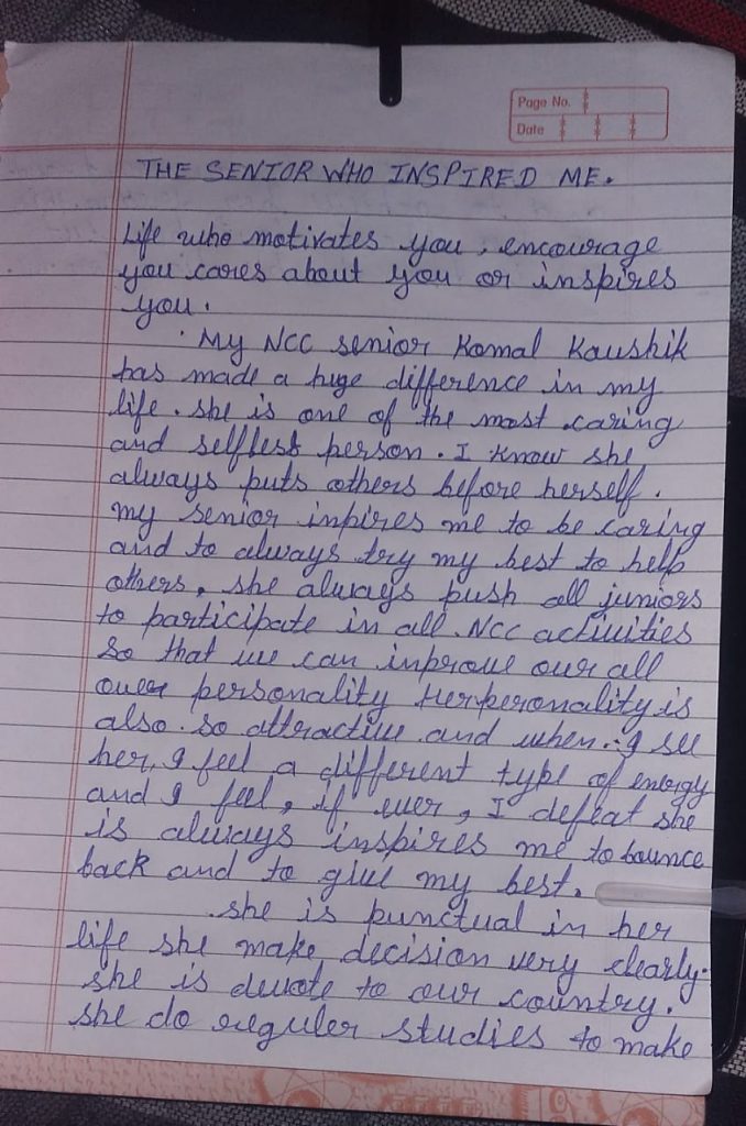 Cadet Kiran 3 HAR (G) BN , NCC Fc College For Women, Hisar She is true inspiration for me. Thank you