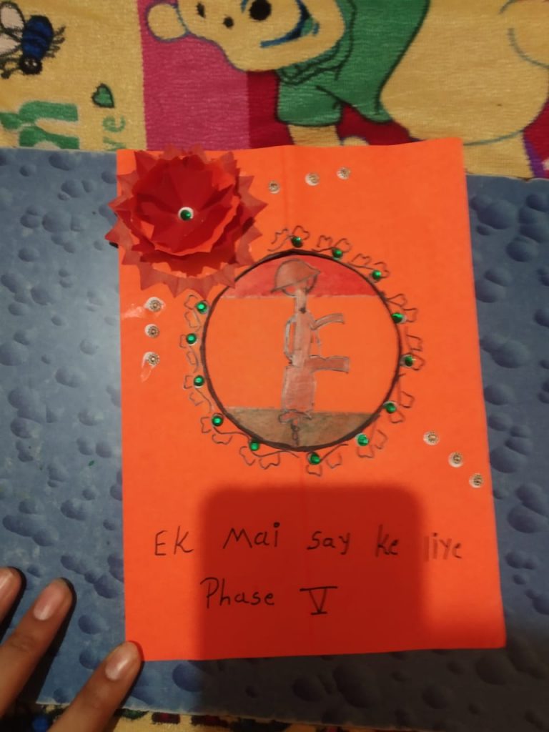 I'm Cadet Agravat Mansi From 3 GUJ GIRL'S BN NCC Bhavnagar prepared greetings card for brave soldiers on Kargil Vijay diwas in ek mai sau k liye phase - 5 campaing
