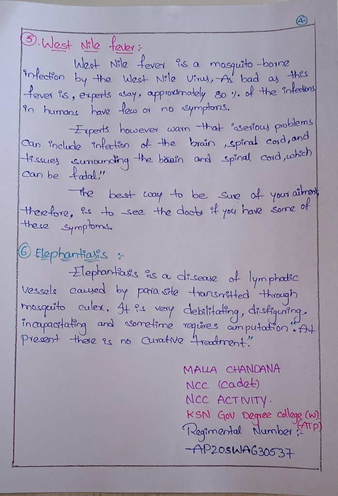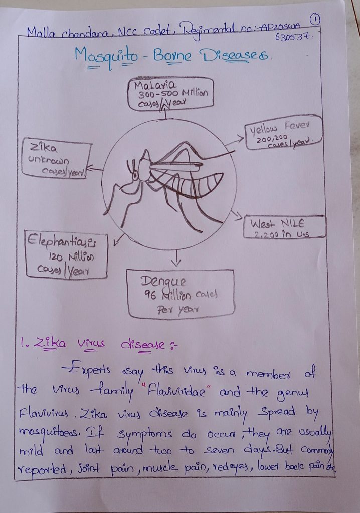 MALLA CHANDANA NCC CADET REGIMENTAL NUMBER: AP20SWA630537 TOPIC:MOSQUITO BORNE DISEASES