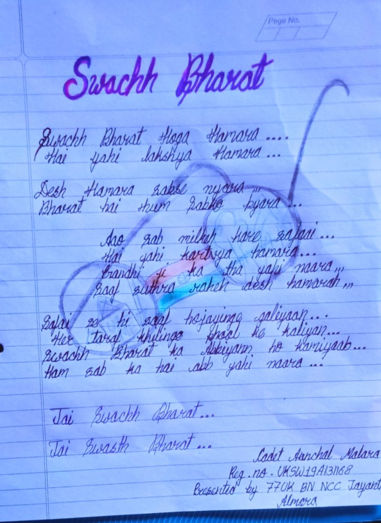 Cadet Aanchal Malara Regiment number UKSW19A131168 Presented by 77 UK BN NCC Jayanti Almora