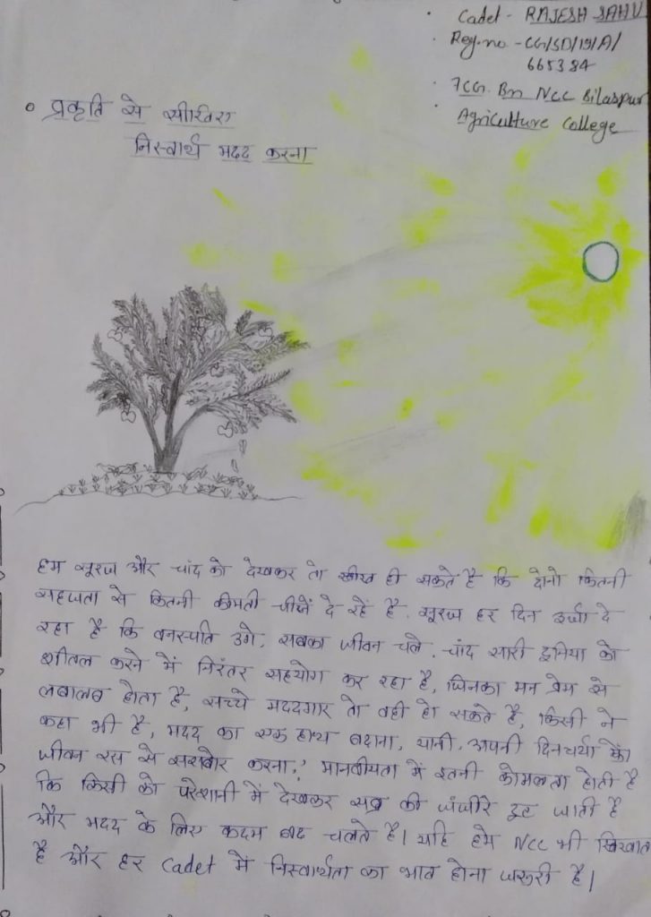 Activity no 10 Cadet Rajesh sahu Reg.no.CG/SD/19/A/665384 7cg Bn Ncc bilaspur BTC CARS bilaspur agriculture college