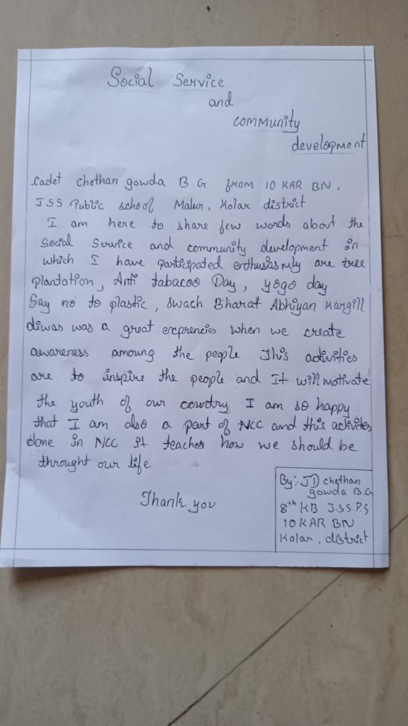 Chethan Gowda BG JD 04 Jss public school malur 10kar bn ncc kolar