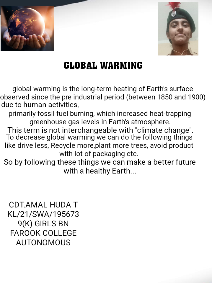 Global warming is one of the big problem we face today.By following activities which prevents global warming we can save this world forever.