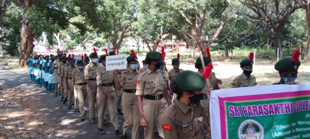 I'm TN19SWA755605 cadet P ELAKKIYA. Do my duty of oru college bus stand. Awareness on rally ODF 15.03.2021