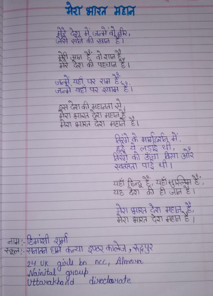 मेरा भारत महान। From HIMANSHI SHARMA R/o Rudrapur