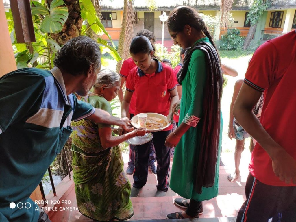we visited an old age home and served an heathy breakfast to the elder people there ,we interacted with them and even tried to entertain them. Then we divided ourselves into groups and started cleaning the premises and planted saplings.
