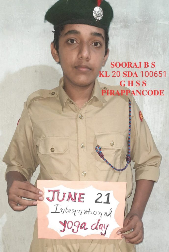I am cdt SOORAJ. B. S.KL 20 SDA 100651.1KL Bn NCC Varkala.I upload this posters about covid 19, world environmental day, international yoga day.