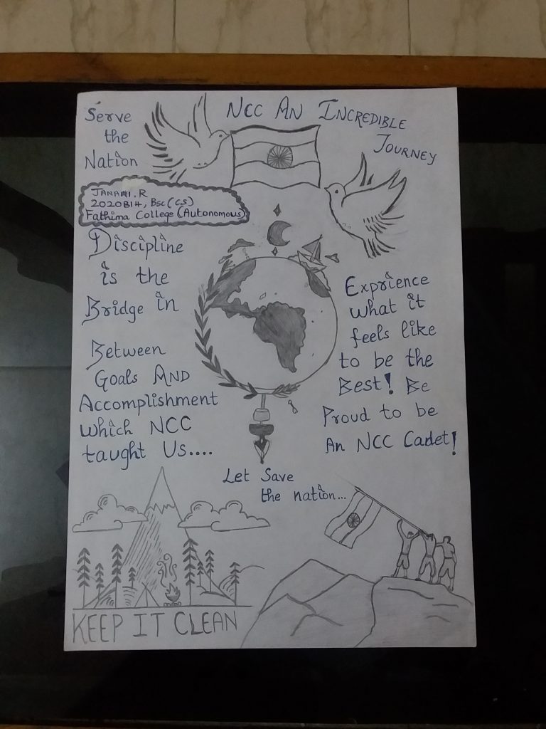 By cadet; Devika Babu KM Ncc Number ; KL/20/JWA/200789 5 Kerala Battalion Ncc Wayanad under Calicut Group, Kerala and Lakshadweep Directorate. Kerala(ST), Wayanad(DT) Nirmala High School Thariyode Standard-IX, Division-F.