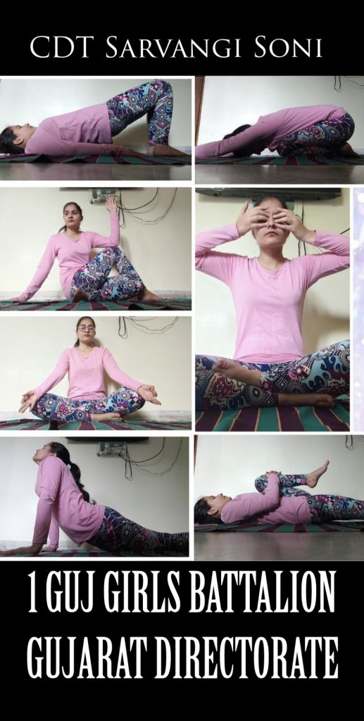 I'm CDT Sarvangi Soni from 1 guj girls battalion gujarat directorate. I'm presenting a photo in which i have performed some yogasana. Yoga improves mental health, keeps body healthy and relaxes muscles and help in increasing immunity power.