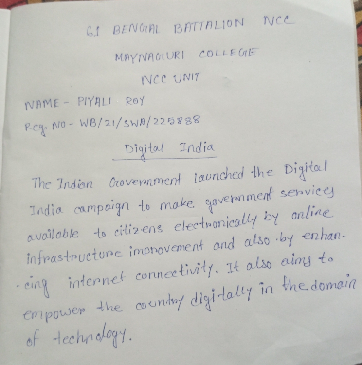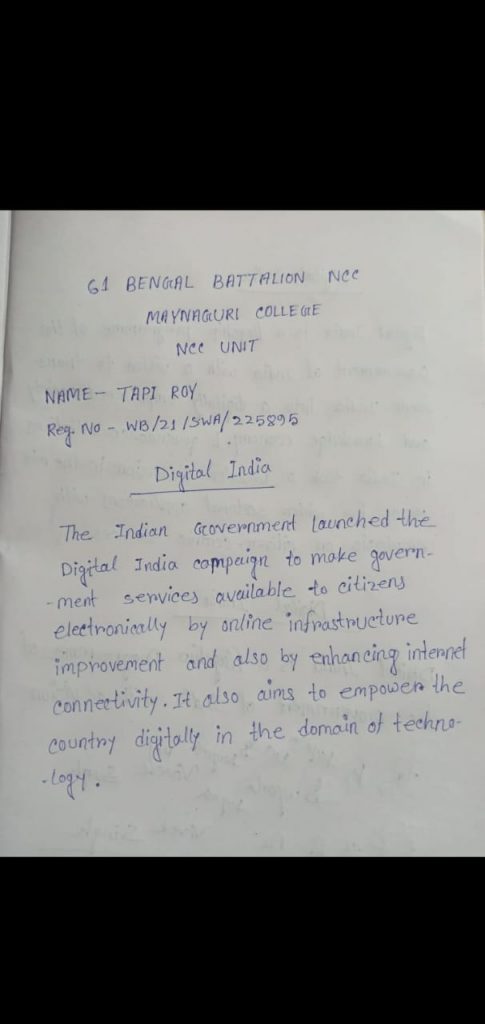 I am cadet Tapi Roy from maynaguri college. 61 bengal battalion ncc unit Regimant number =WB/21/SWA/225895