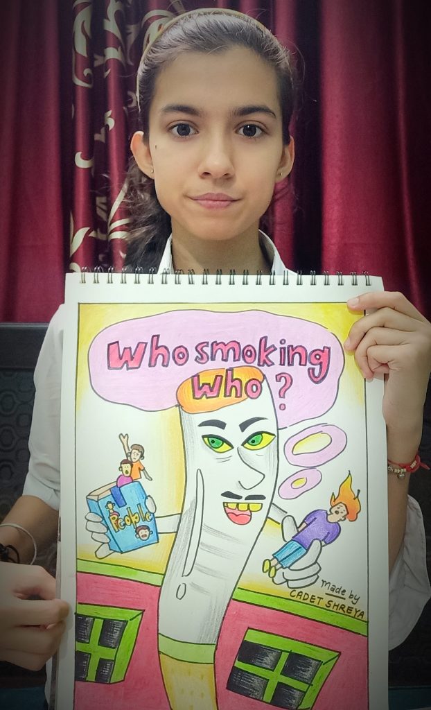 I am Shreya, NCC Cadet of J&K Girls Bn NCC (2) and I feel delighted to participate and be a part of this Initiative to spread awareness to say no to smoking...