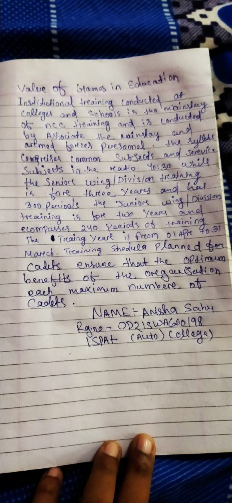 Cadet GANGISETTI KRISHNA SAI REG NO OD20SDA676017 NIT,ROURKELA