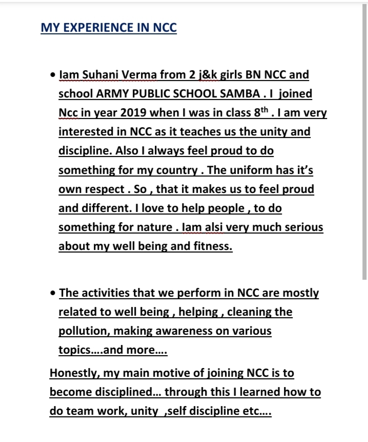 By cadet: SUHANI VERMA ARMY PUBLIC SCHOOL SAMBA 2 J&K GIRLS BN NCC