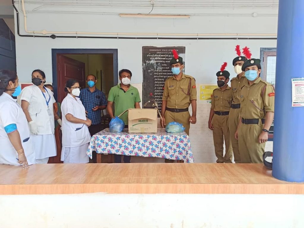 We the cadets of ST THOMAS HSS THANKAMANY 33 Ker Bn NCC distributed lunch packets to Health workers of kamakshi government hospital . In this situation where the epidemic of covid 19 is spreading all over the