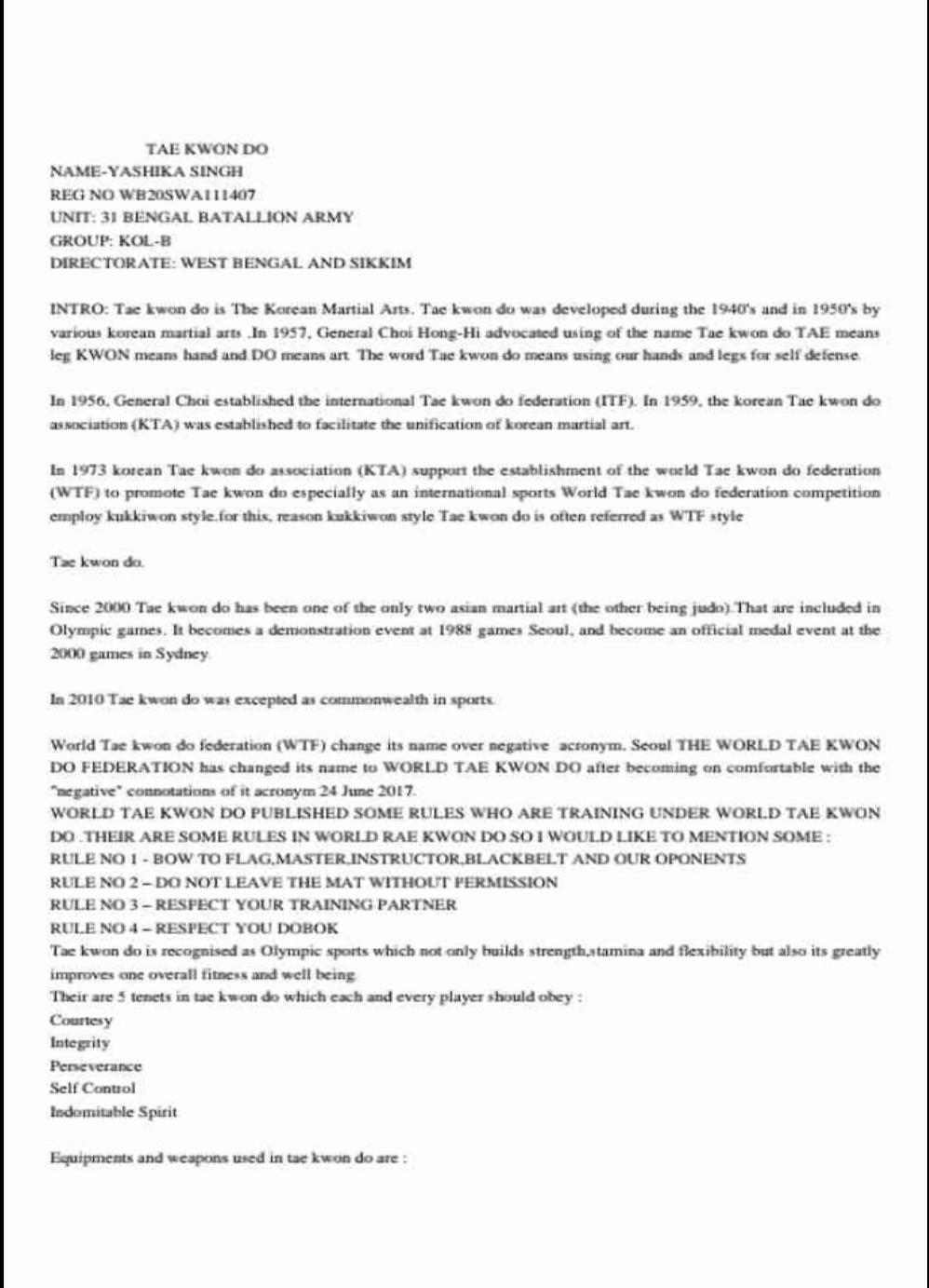No-WB20SWA111407 Rank- CADET Name-YASHIKA SINGH Unit-31 BENGAL BATTALION NCC Gp- KOL B Directorate-WEST BENGAL & SIKKIM DIRECTORATE